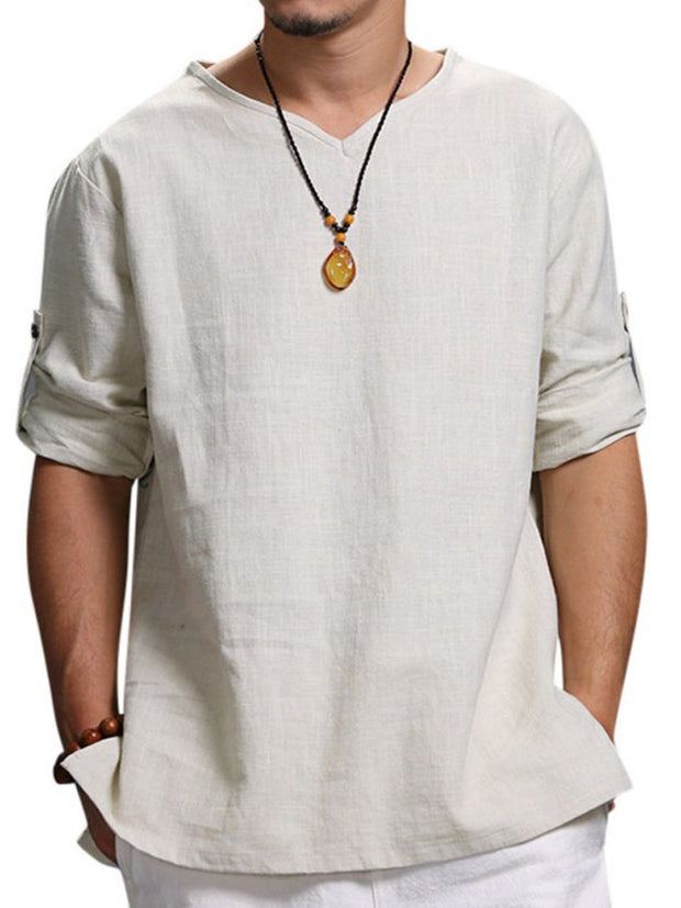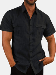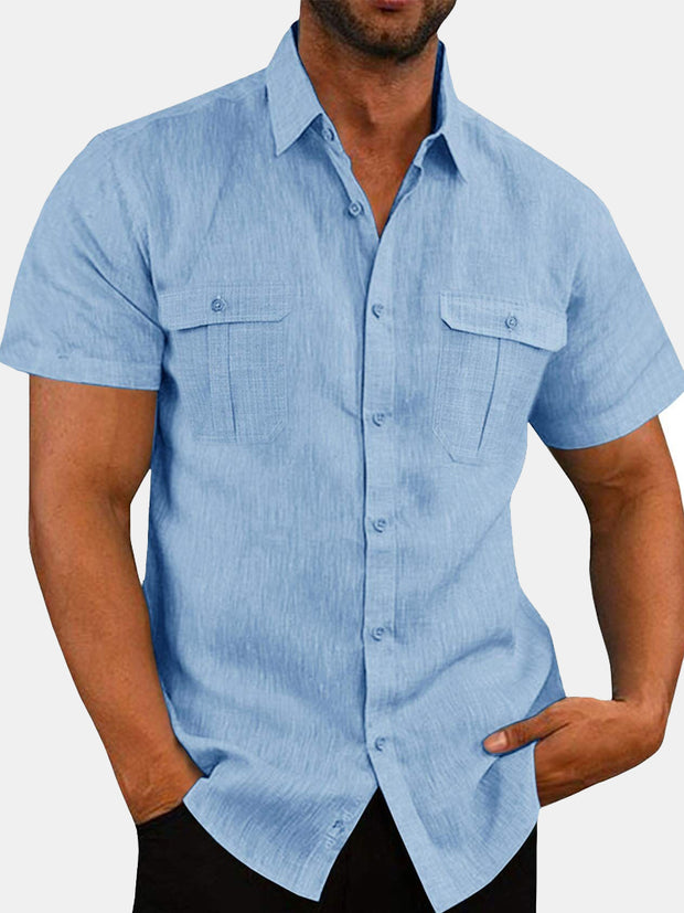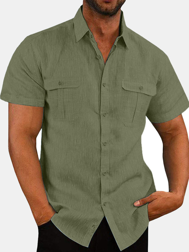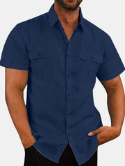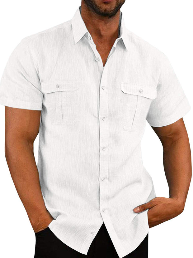 Mens Cotton Irregular Line Print Plain Loose Thin Short Sleeve Shirts