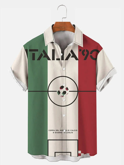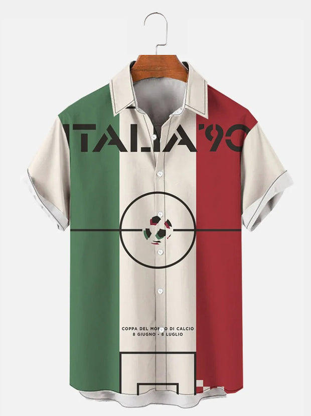 Fydude Men's Beige 1990 Italy World Cup Printed Shirt