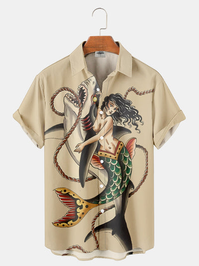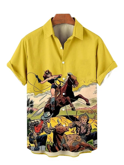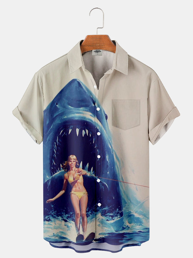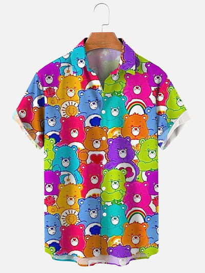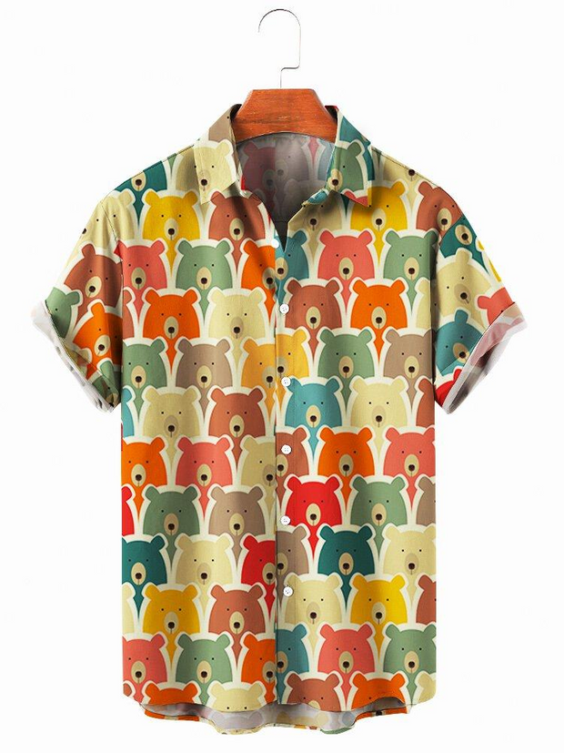 Fydude Men's Casual Bear Short Sleeve Shirt