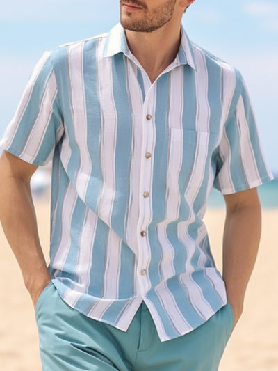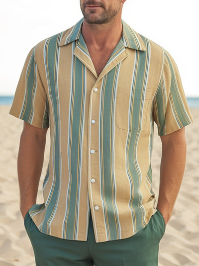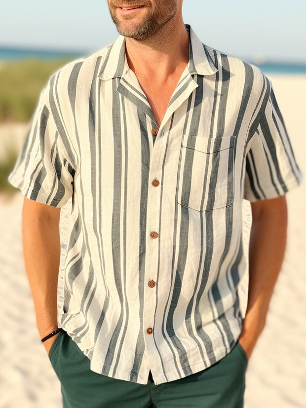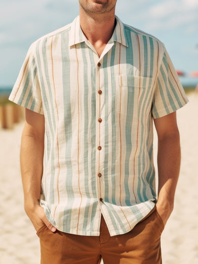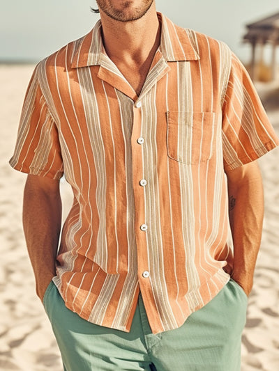 Fydude Men'S Vintage Stripe Print Shirt