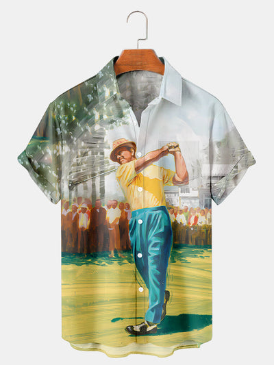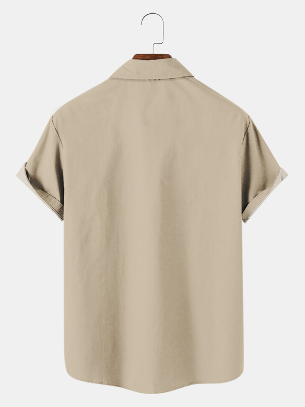 Fydude Men'S Hawaiian Leaf Stripe Print Cotton And Linen Shirt
