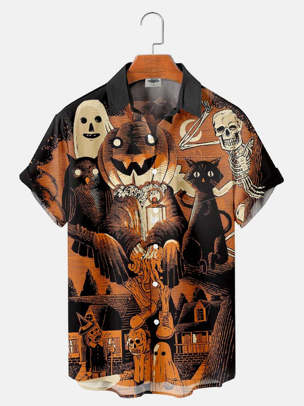Fydude Men'S Halloween Classic Monster Hawaii Tiki Printed Shirt