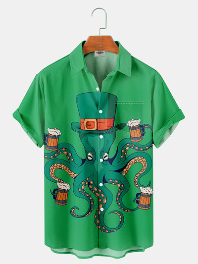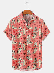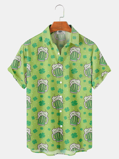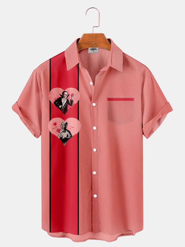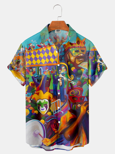 Fydude Men'S Mardi Gras Mask Print Short Sleeve Shirt