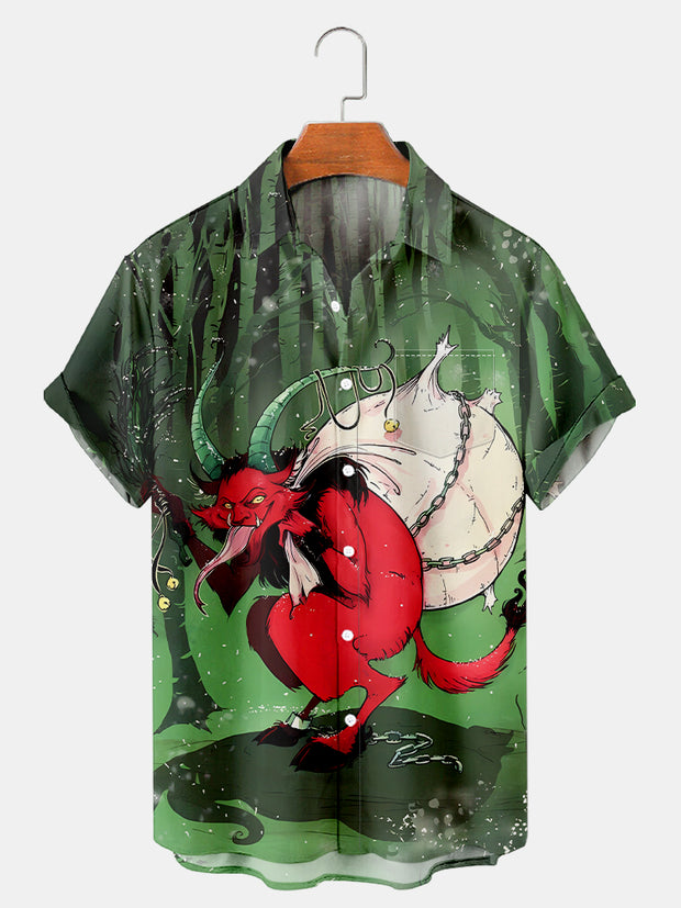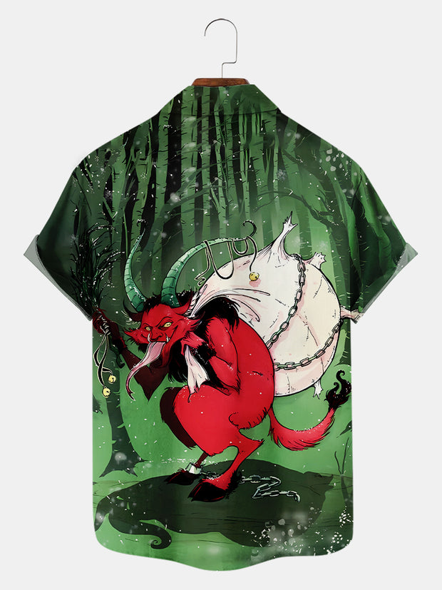 Fydude Men's Christmas Krampus In The Forest Printed Short Sleeve Shirt