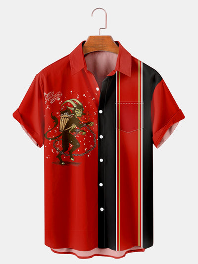 Fydude Men's Christmas Snow Krampus Printed Short Sleeve Shirt