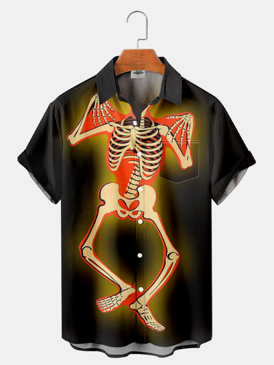 Fydude Men'S Halloween Glowing Skull Printed Shirt