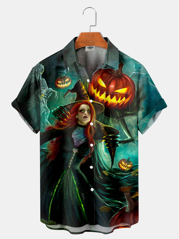 Fydude Men'S Halloween Witch And Pumpkin Printed Shirt