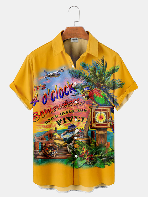 Fydude Men'S It's 5 O'clock Somewhere Parrot Printed Shirt