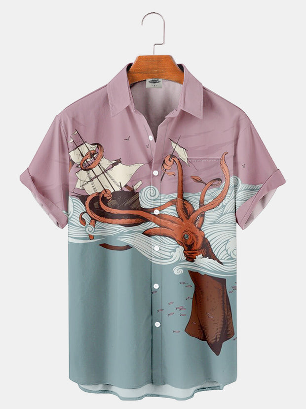 Fydude Men'S Octopus And Sailboat Printed Shirt