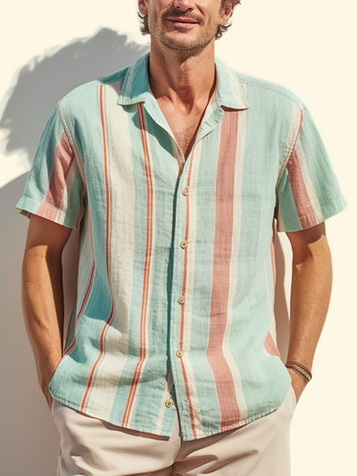 Fydude Men'S Stripe Print Cotton Linen Shirt